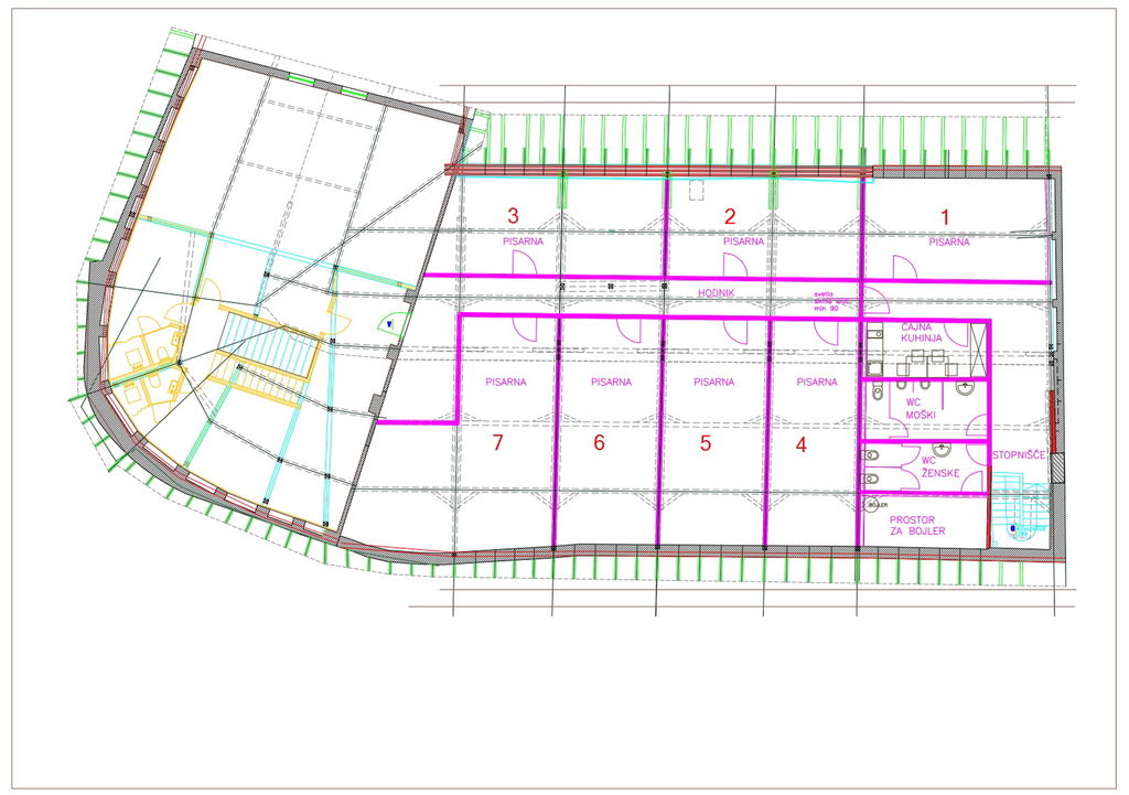 Pisarna: neto 25 m² bruto 34.5 m² = 295 €/mesec + stroški