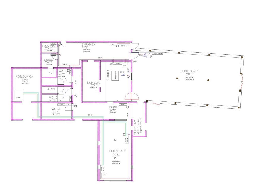 Objekt obsega: kuhinjo, bar, jedilnico, shrambo (skladišče), garderobno sobo, ločene wc-je, vetrolov, kotlovnico in lopo za športno opremo.
